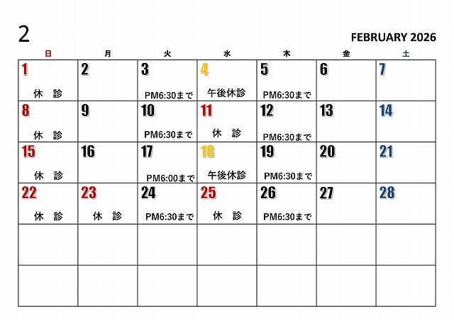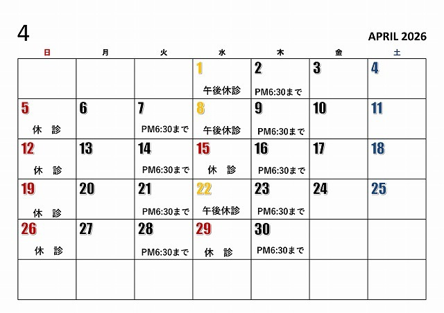 ※6月から火曜日に大学の講義があるため午後休診になることがあります。