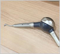 これは微細な粒子をウォータースプレーで吹きつけ、歯の表面に付着したしつこい汚れ(歯垢・プラーク)やタバコのヤニ、茶シブなどの汚れを除去します。使用後は汚れの再付着を防ぐためPMTCを行い、歯の表面をツルツルにしていきます。